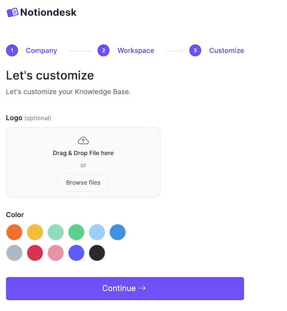 To start using Notiondesk to support your customers, you will first need to create an account and connect your Notion workspace.